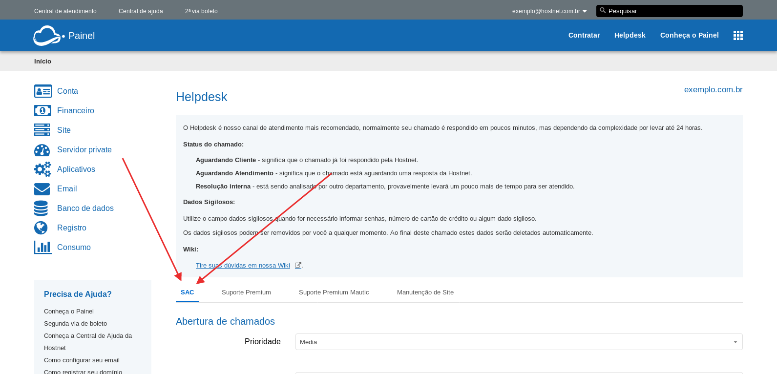 Nesse tutorial estaremos ensinando a abrir um chamado em nosso helpdesk, recurso que é necessário que se possua acesso à conta principal Hostnet.