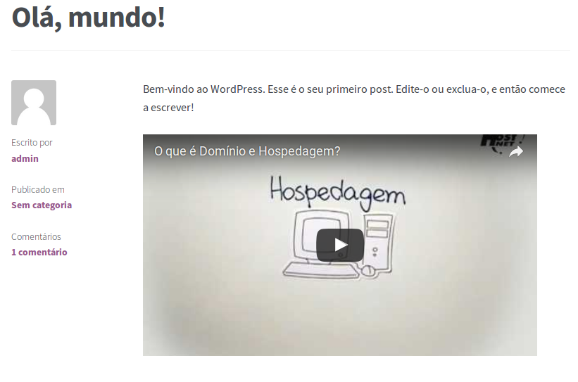 - Ao concluir os procedimentos, sua página ou post estará conforme a imagem abaixo: